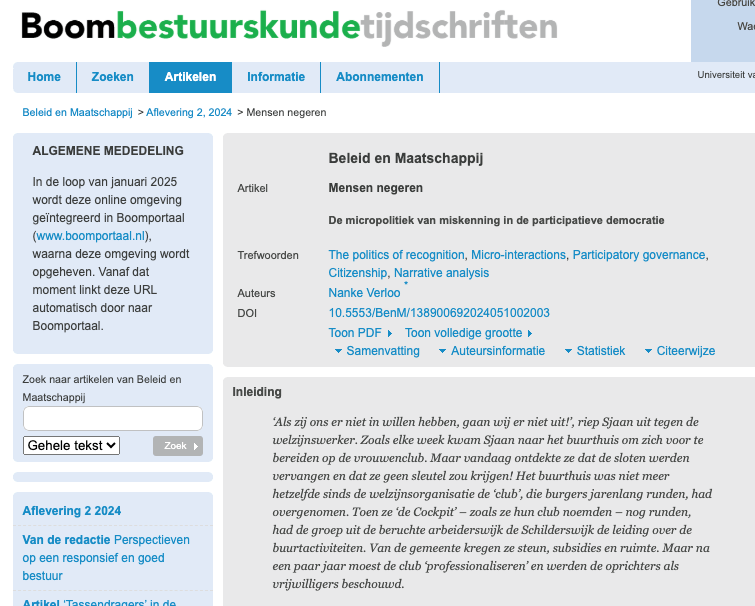 Mijn academisch artikel over de verschillende manieren waarop mensen genegeerd worden tijdens participatie processen waarvoor zij juist zijn uitgenodigd, is nu ook in het Nederlands te lezen in Beleid en Maatschappij.